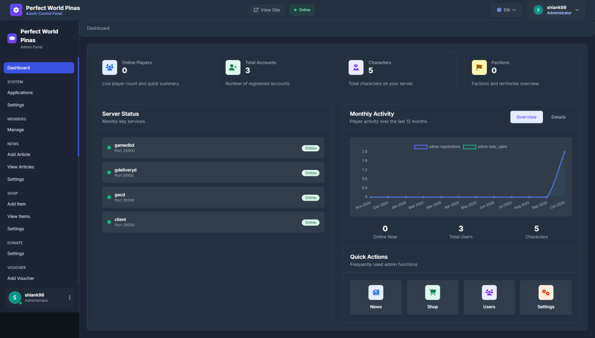 Esta é uma versão inicial do meu painel. Pode conter bugs inesperados e outros problemas, mas, em geral, é bastante funcional.
